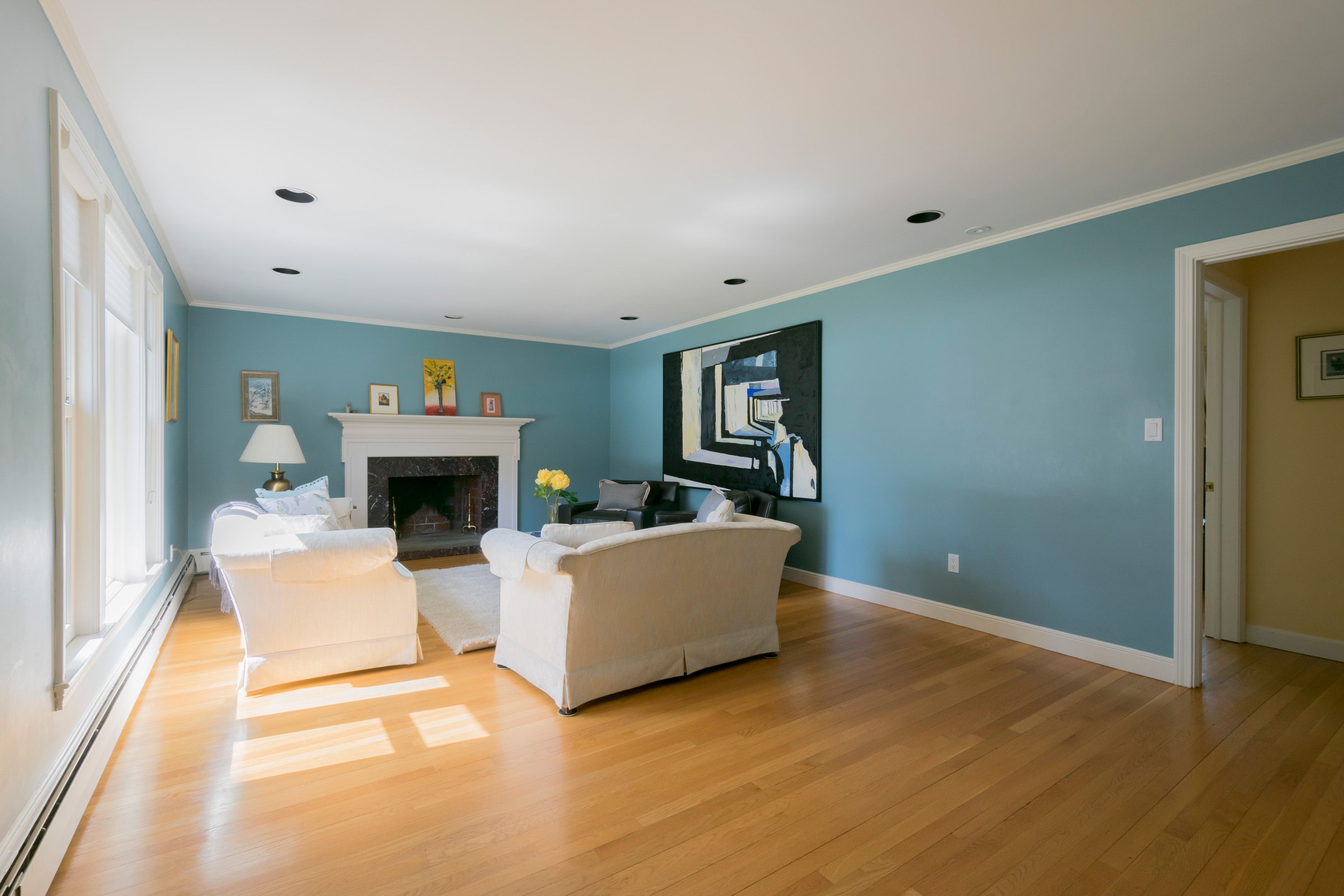 Imagine living in one of Lexington’s finest neighborhoods within walking distance to the town center and Lexington High School. This immaculately maintained Colonial has it all, perfectly set on a spacious lot with modern style and curb appeal galore. The center entrance welcomes you inside the front foyer, with shining marble floor tiles, and transitions to the formal living room through a cased opening on the left. You’ll feel right at home as natural light streams through the large picture window of this beautiful room graced by gleaming hardwood floors, crown molding, and recessed lighting. A wood-burning fireplace creates a focal point with a stylish white mantel and marble tile surround.