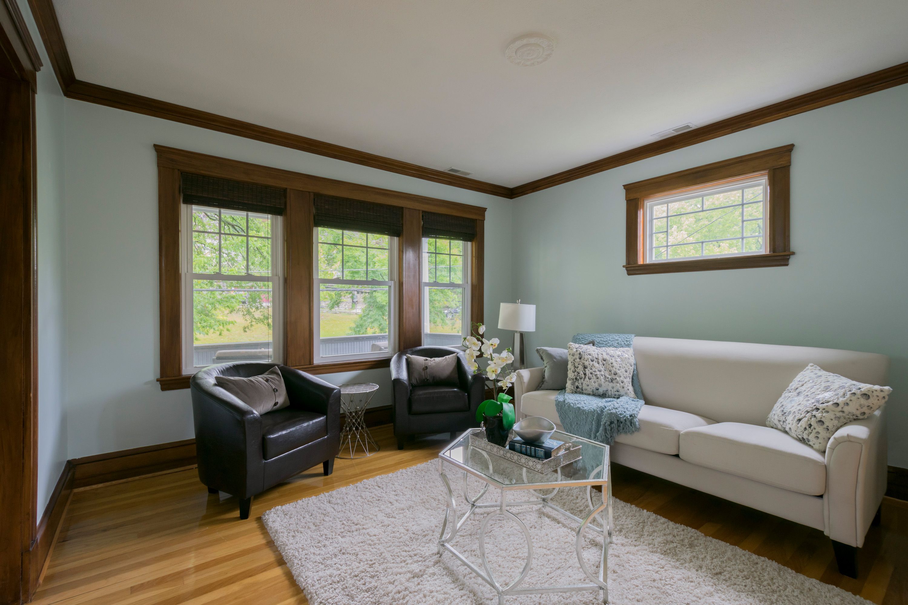 Welcome home to a carefree lifestyle in this immaculate condo ideally situated steps from The Minuteman Bike Path and shopping/dining in Arlington Heights. This lovely home was gut rehabbed and converted to condo units in 2009 offering the perfect mix of modern style and original charm. Enter the sunny office area where sliding French doors draw you into the beautiful formal living room with gleaming hardwood floors, handsome crown molding, and triple windows for abundant natural light. A cased opening spills into the formal dining room as the shining hardwood floors and crown molding continue to span the home. Triple windows and a built-in China cabinet grace this elegant room perfect for hosting dinner parties with friends and family.