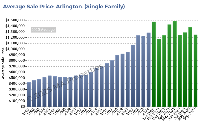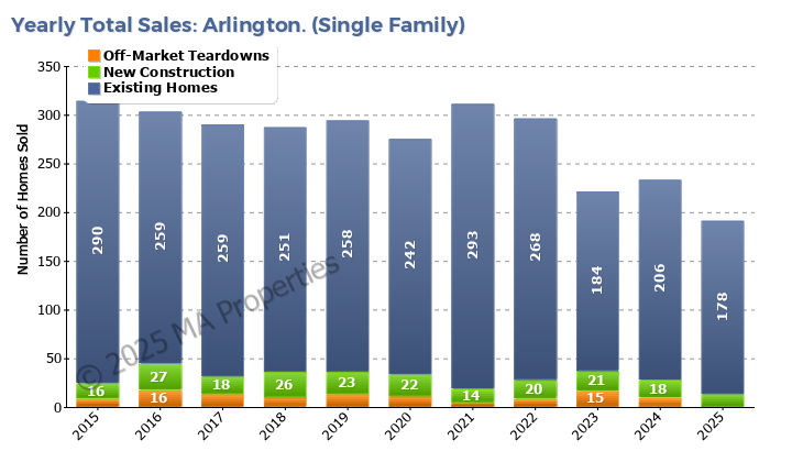 The increase in homes sales was delayed by 12 months in a number of towns - see Arlington Yearly Total Sales data below. Based on prior historical data in these towns, these will follow the trends and return to normal home sale levels in 2023.