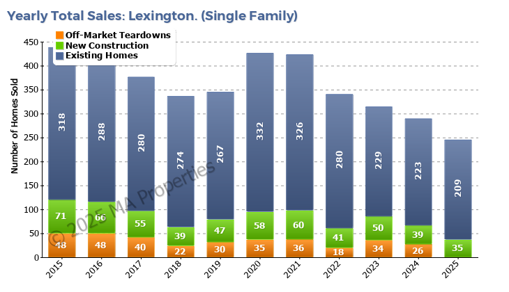 Eventually this COVID effect will work itself out and we will return to the normal levels. We can see this happening in a number of town. Here's the Yearly Total Sales data for Lexington. The number of homes available for sale in 2022 are returning to the levels seen in 2018/2019.
