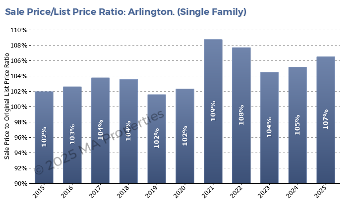 We have definitely seen a reduction in this ratio over the past 3 months. But it's important to look at the absolute number. The sale price to list price ratio is still over 100% for both Arlington and Lexington - this means multiple buyers are competing for homes. Remember also, that as we progress through the year many buyers have already bought and so there is less competition from other buyers and so a slight reduction in this metric is not uncommon as the year progresses.